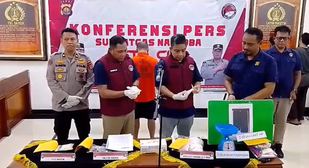 Pemayung.id – Diresnarkoba Polda Jambi menangkap pengedar jaringan Lapas berinisial D (38). Narkoba jenis sabu, ganja dan pil ektasi senilai Rp1 miliar lebih disita.