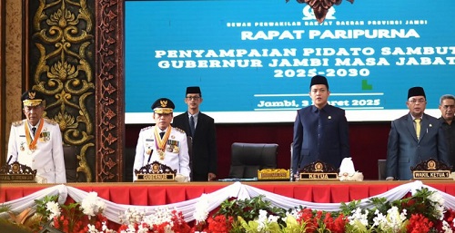 “Ini adalah pidato pertama kami setelah dilantik, dan ada kewajiban untuk menyampaikan pidato pertama didepan anggota dewan untuk masa jabatan kami 2025-2030. Saya menyampaian visi misi Jambi Mantap jilid dua dengan mendukung penuh program Asta Cita dari Presiden sehingga ada sinergi antara program Presiden dengan program kami di daerah, karena memang dalam Asta Cita itu sudah ada program Jambi Mantap dan untuk itu agar kita sinergikan dan kita sinkronkan,” jelas Haris.