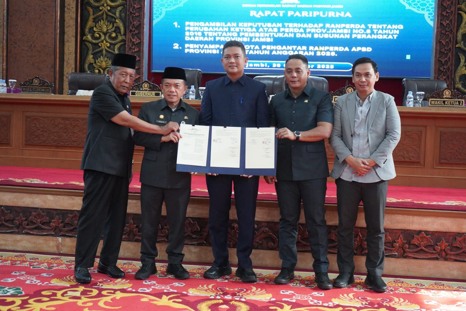 Hal tersebut dikemukakan Gubernur saat menghadiri Rapat Paripurna Dewan Perwakilan Rakyat Daerah (DPRD) Provinsi Jambi, dalam rangka Penyampaian Nota Keuangan dan Rancangan Anggaran Pendapatan dan Belanja Daerah Provinsi Jambi Tahun Anggaran 2026 dan Keputusan Dewan terhadap Ranperda diluar Propemperda Provinsi Jambi Tahun 2025 tentang Perubahan Ketiga atas Perda Provinsi Jambi Nomor 8 Tahun 2016 tentang Pembentukan dan Susunan Perangkat Daerah Provinsi Jambi, bertempat di Ruang Utama Gedung Dewan Perwakilan Rakyat Daerah (DPRD) Provinsi Jambi, Kamis (30/10/2025) siang.